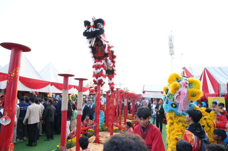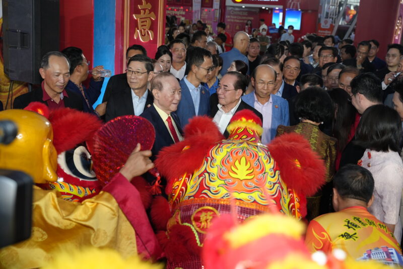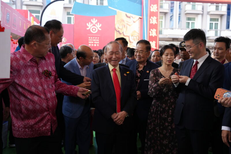 2月8日当天,中国驻柬大使馆姜楠公使、柬华理事总会会长方侨生大公爵等嘉宾亲临现场主持剪彩仪式。剪彩结束后,嘉宾们逐一走访各参展摊位,与现场民众及商家亲切互动。嘉宾的出席不仅显著提升了活动的规格,更为这场民间文化交流盛事增添了浓厚的情谊色彩。
