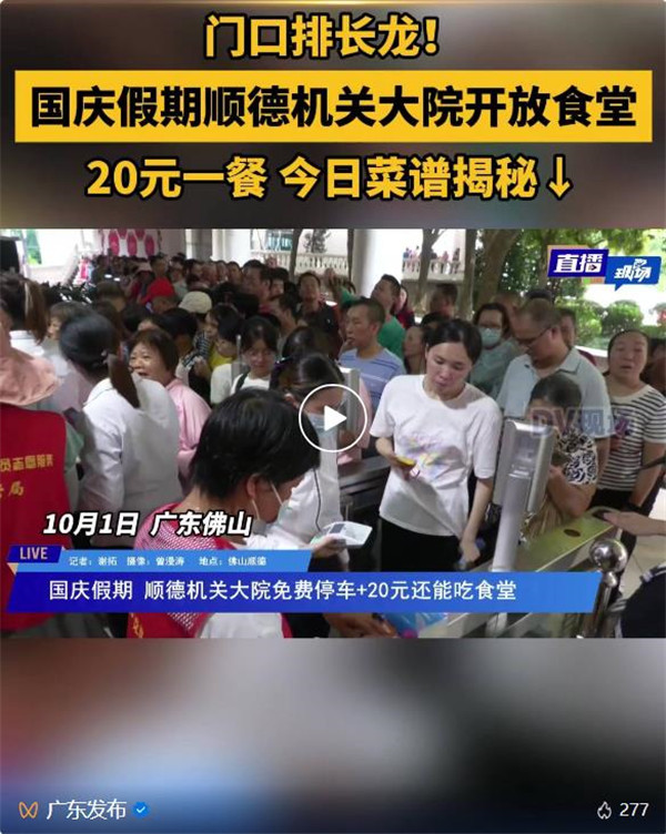 国庆假期,顺德区政府因首次面向公众开放停车位、食堂等服务,成为顺德假期热门的打卡点。