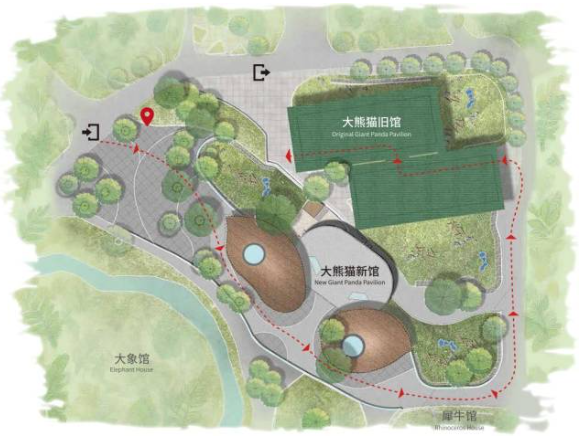 新馆毗邻旧馆,串联成为整体,有效延长参观流线,沿途穿插布置各类科普互动设施,打造蕴含趣味性、知识性的“一次性看四只大熊猫”沉浸式体验。