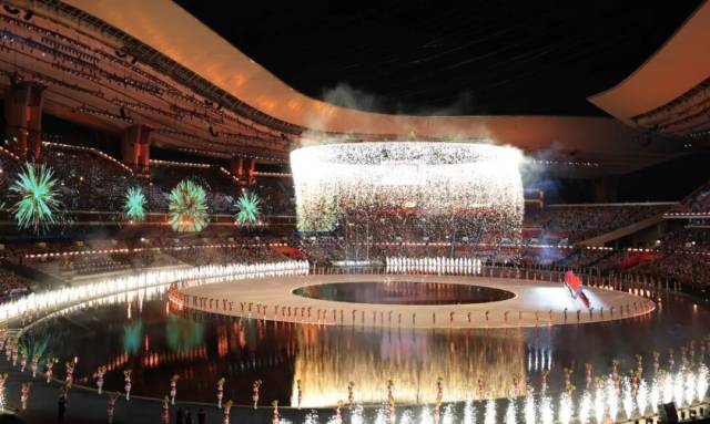 环形的“同心圆”水舞台,是开幕式当晚的第一重惊喜。