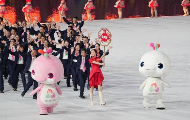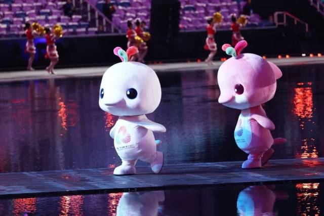 与运动员一齐入场的,还有超萌的十五运会吉祥物“喜洋洋”“乐融融”。