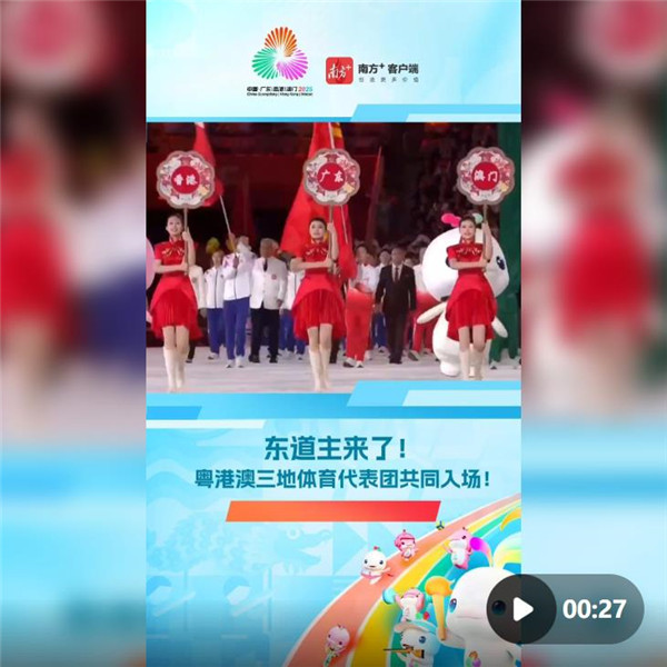 粤港澳三地首次携手承办全运会,这是“一国两制”框架下体育领域的重大创新。东道主广东、香港、澳门体育代表团入场,掀起全场高潮。