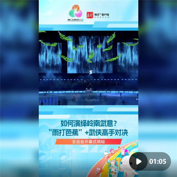 开幕式紧紧抓住与粤港澳密切相关的“水”这一元素,别出心裁地“把大海请进体育场”。