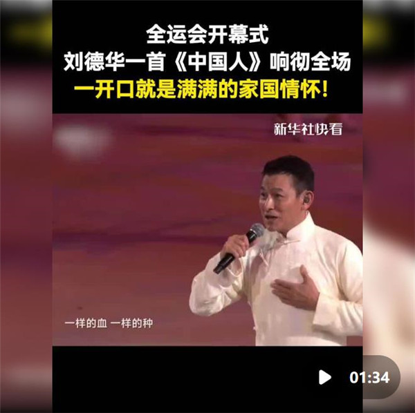 刘德华领衔唱响《中国人》,引发台下万人大合唱,让开幕式气氛再掀高潮。