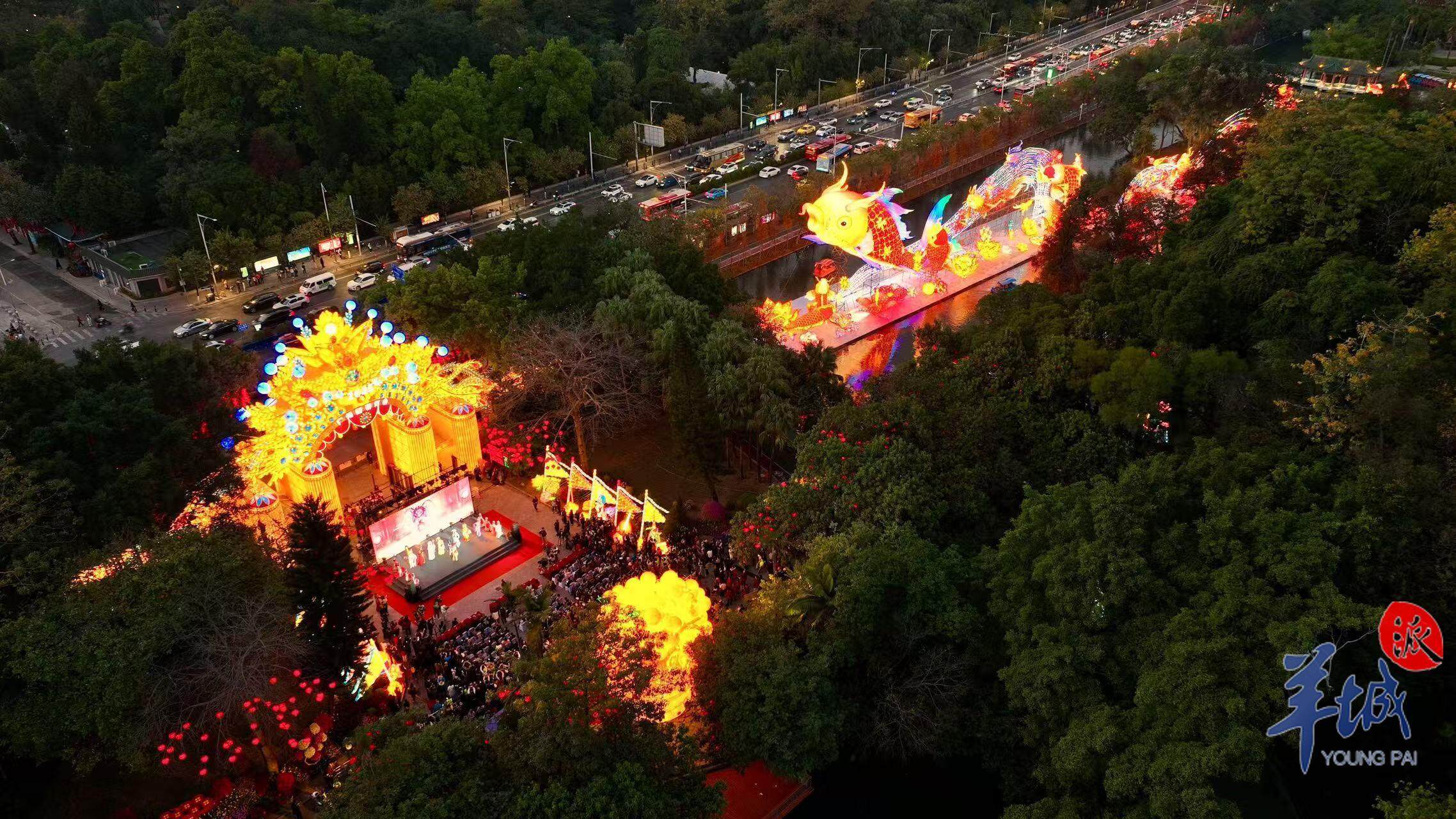 巨型凤冠流光溢彩,百米锦鲤气势磅礴,聚宝盆上金桔满载,诗意羊城古今吟诵……广州越秀山上灯火辉煌,喜迎八方来客,一场灯会不仅折射着千年羊城的城脉、商脉、文脉,也于新春佳节之际添河山锦绣、映万家灯火,共迎首个“非遗中国年”。